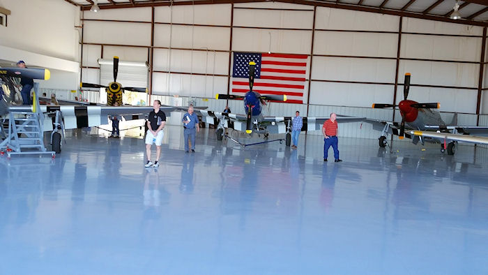 occupied by three P-51 Mustangs and an L-39 Albatross. All 4