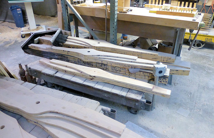 Here the rough cut wood is glued up to the approximate