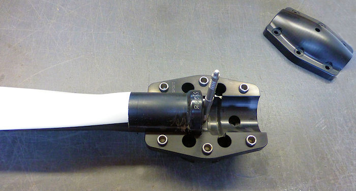 With the pitch setting gage in place, rotate the