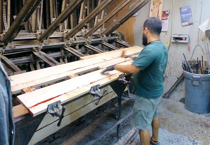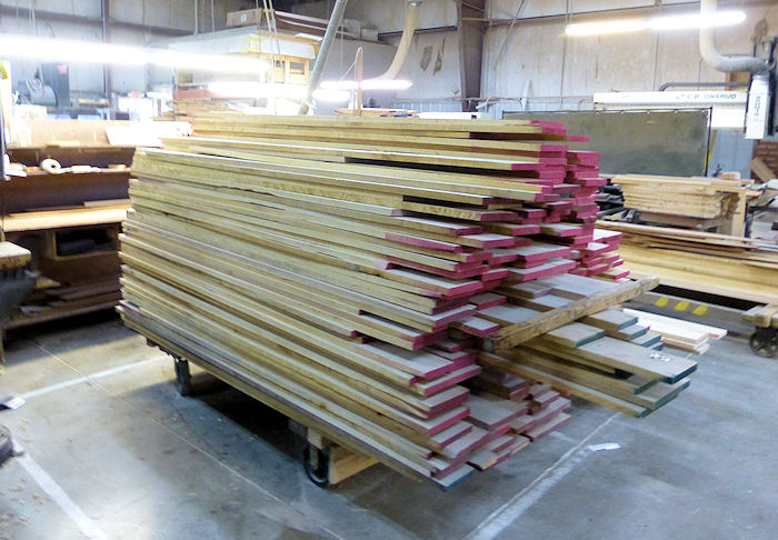 Here the rough cut wood is glued up to the approximate